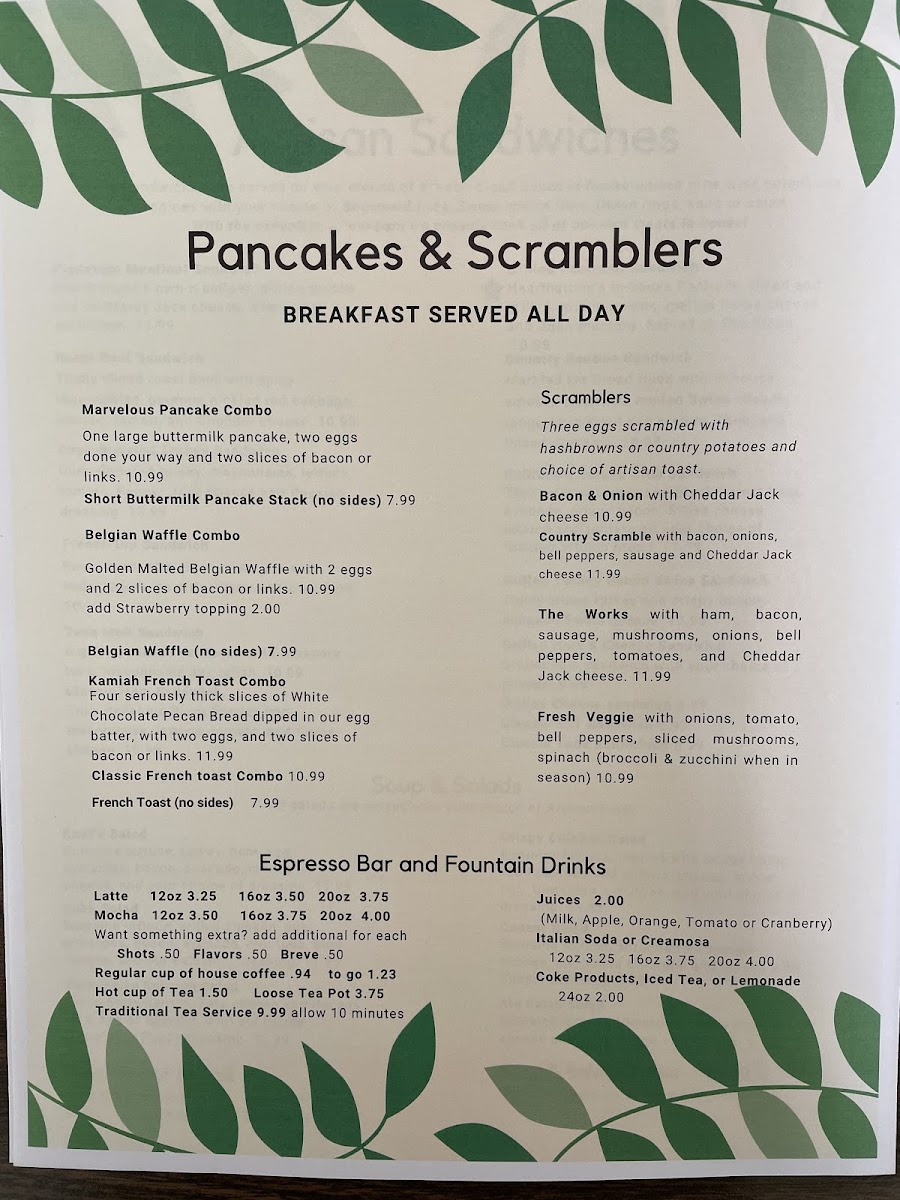 “ Nice atmosphere, great staff, great food. We had a traditional breakfast. Eggs, potatoes, toast, sausage links and ham. The sausage links are very tasty. The breakfast ham is honey ham. Be prepared, they have 16 types of bread to choose your toast. ”